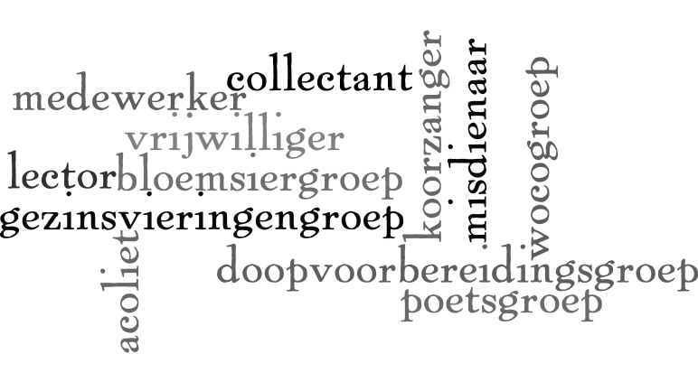 Dat is jammer: als de kerk een geloofsgemeenschap is, dan wordt het liefdesverhaal van Jezus, het Evangelie, op de eerste plaats beleefd in de eigen parochie. Met name de vrijwilligers hebben hier een geweldige opdracht: zij zijn de meest bekende getuigen van de boodschap van Christus. Zoals u weet, doe je dat niet alleen in de kerk maar ook en vooral daarbuiten. Laten we dat ideaal samen beleven – en elkaar niet de maat nemen.