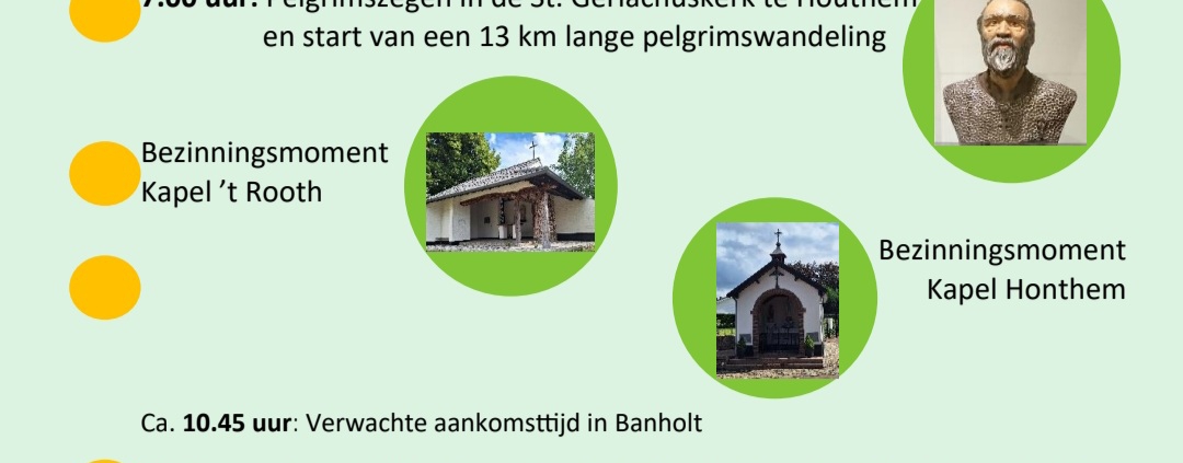 - Deelname aan deze pelgrimswandeling is gratis; opgave vooraf is niet nodig.